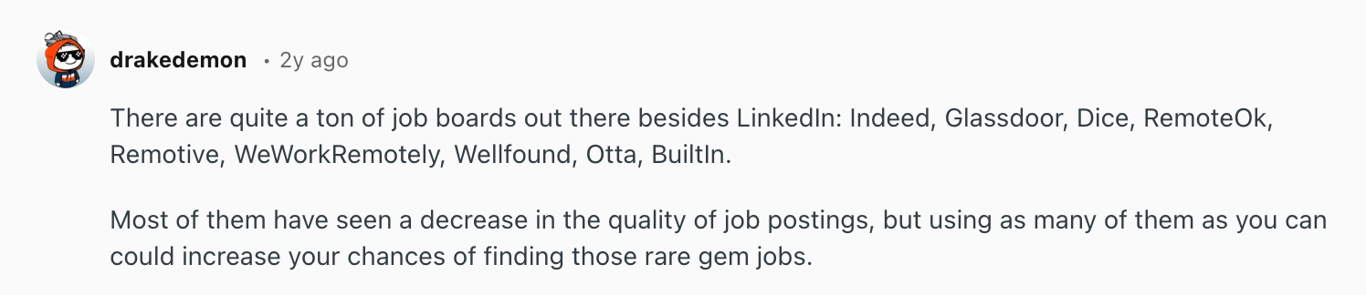 Built In can be a useful addition for anyone targeting tech or startup roles. While it shouldn’t be your only platform, staying active on it can still help you come across relevant opportunities during your search.