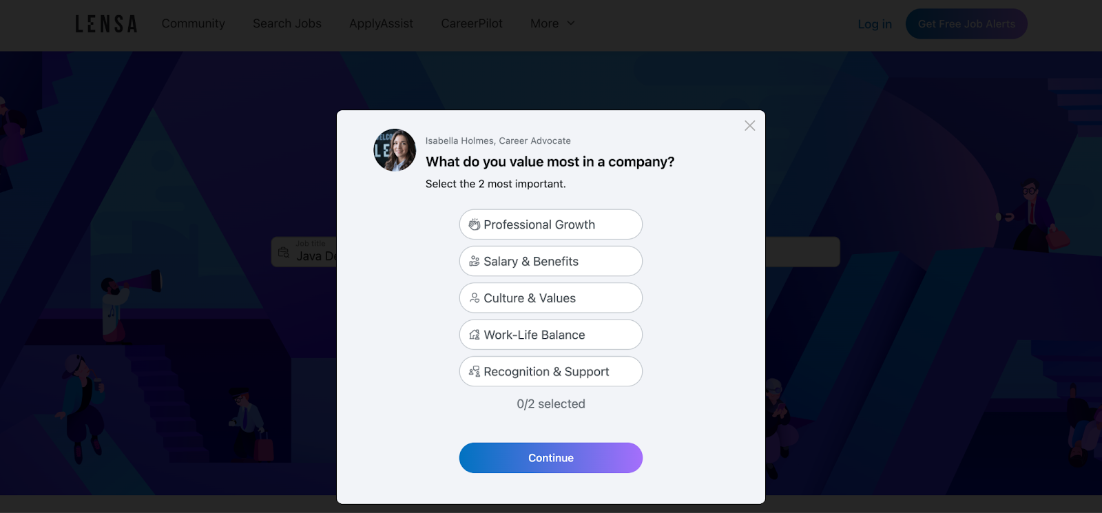 Lensa is a job search platform that positions itself as a place to discover your next opportunity by using AI. It also aims to narrow down and surface relevant roles to you based on your location, title, and career interests.